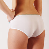 The AIGUE-MARINE Shorty is made of micromodal and tulle. Designed for the most sensitive and delicate skins It has an extremely soft feel.  All these models have tulle to keep their light airy aspect.  Aigue-Marine's graphic design plays with the transparencies in a fine and delicate way. Matching Aigue-Marine Brief and Bra. The bottom of Shortys and briefs are cotton-lined..